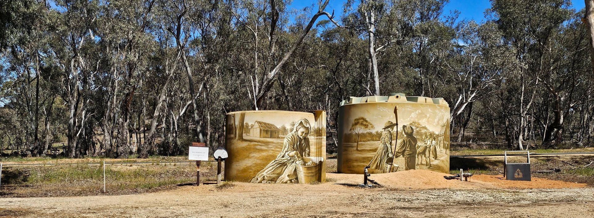 The site itself is a charming and peaceful destination, offering visitors a chance to admire both the beautifully restored church and the striking new murals that now adorn the tanks beside it. It’s well worth a visit for anyone interested in history, art, or simply exploring the hidden gems of regional Victoria.