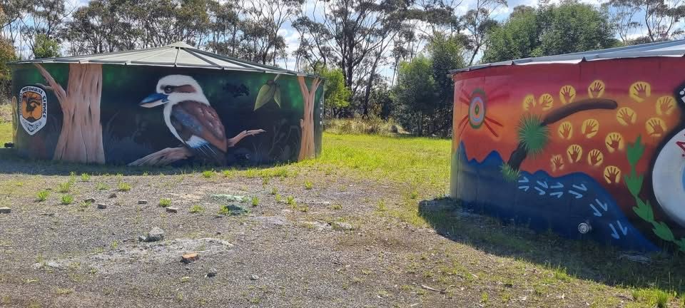 Throughout the project, drone footage captured the process, culminating in a mural launch. Students returned to celebrate their work alongside local community members, including representatives from National Parks, the local council, and Rotary. A smoking ceremony led by Uncle Colin Lockier officially opened the tanks, honoring the students' achievements.