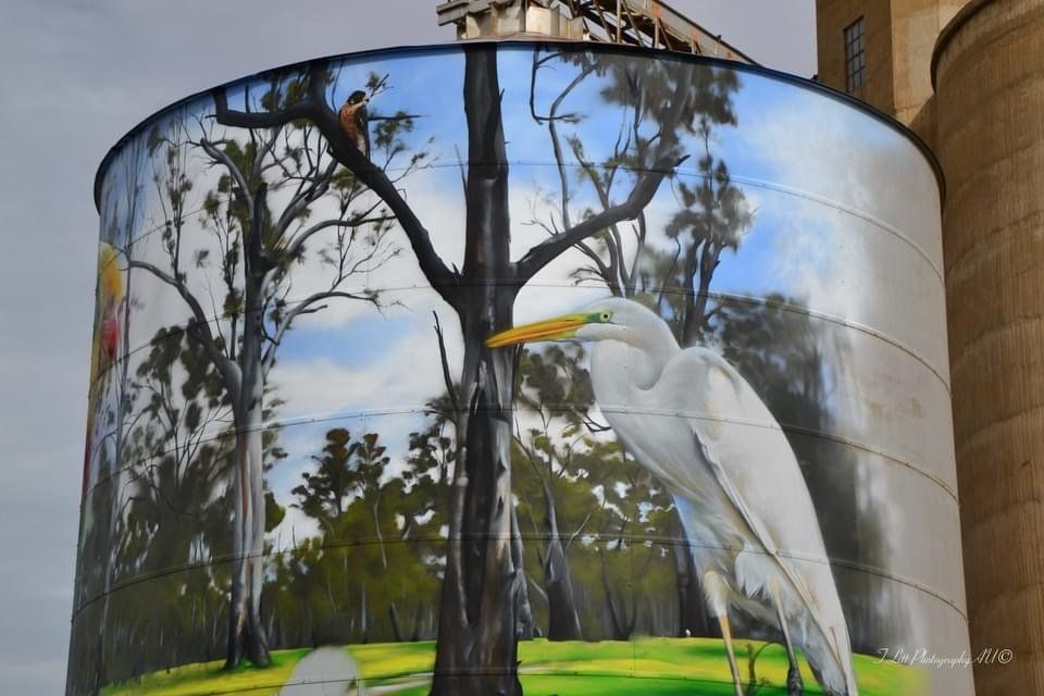 The painting of the metal silo in Picola marks the commencement of a two-part project. This initial phase showcases the local Barmah Forest, with plans to paint the concrete silos at a later date as funding becomes available.