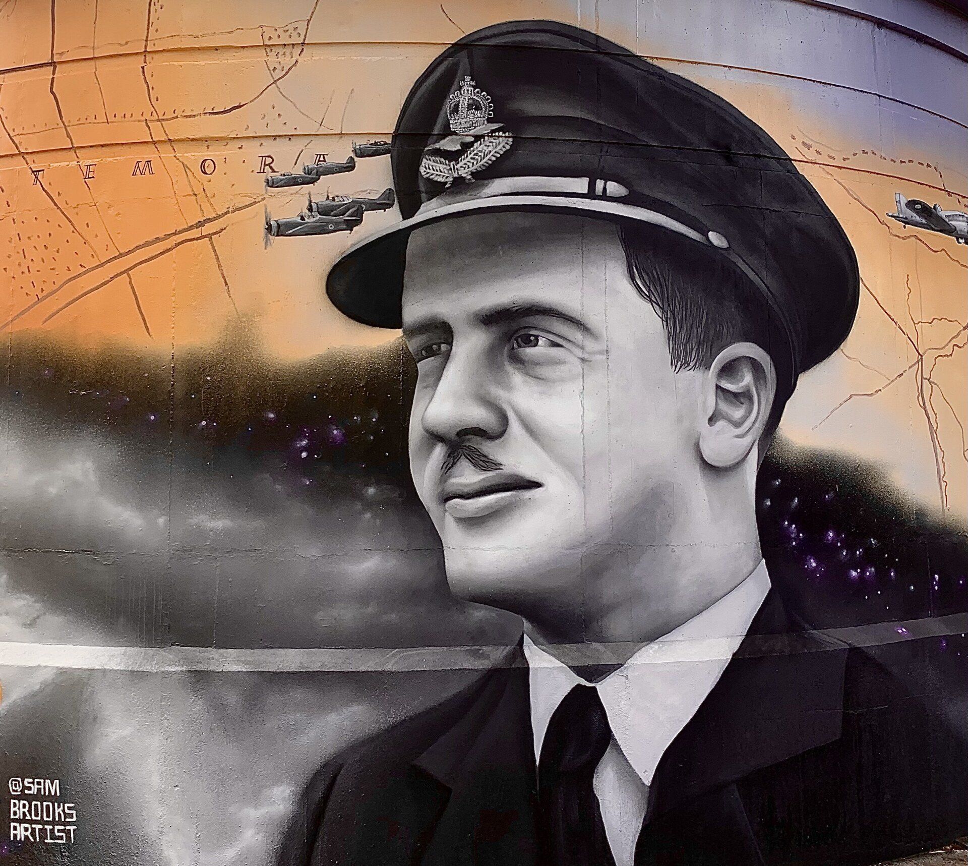 Sam's hope for this piece is that it allows the viewer to connect to the history and real life heroism, courage and sacrifice that took place right where this mural stands. He hopes to show the epic nature of flight, mastery and artistry of these brilliant machines, but to also use this beauty to draw the audience into recognising the very human loss and sacrifice that these machines are inevitably tied too.