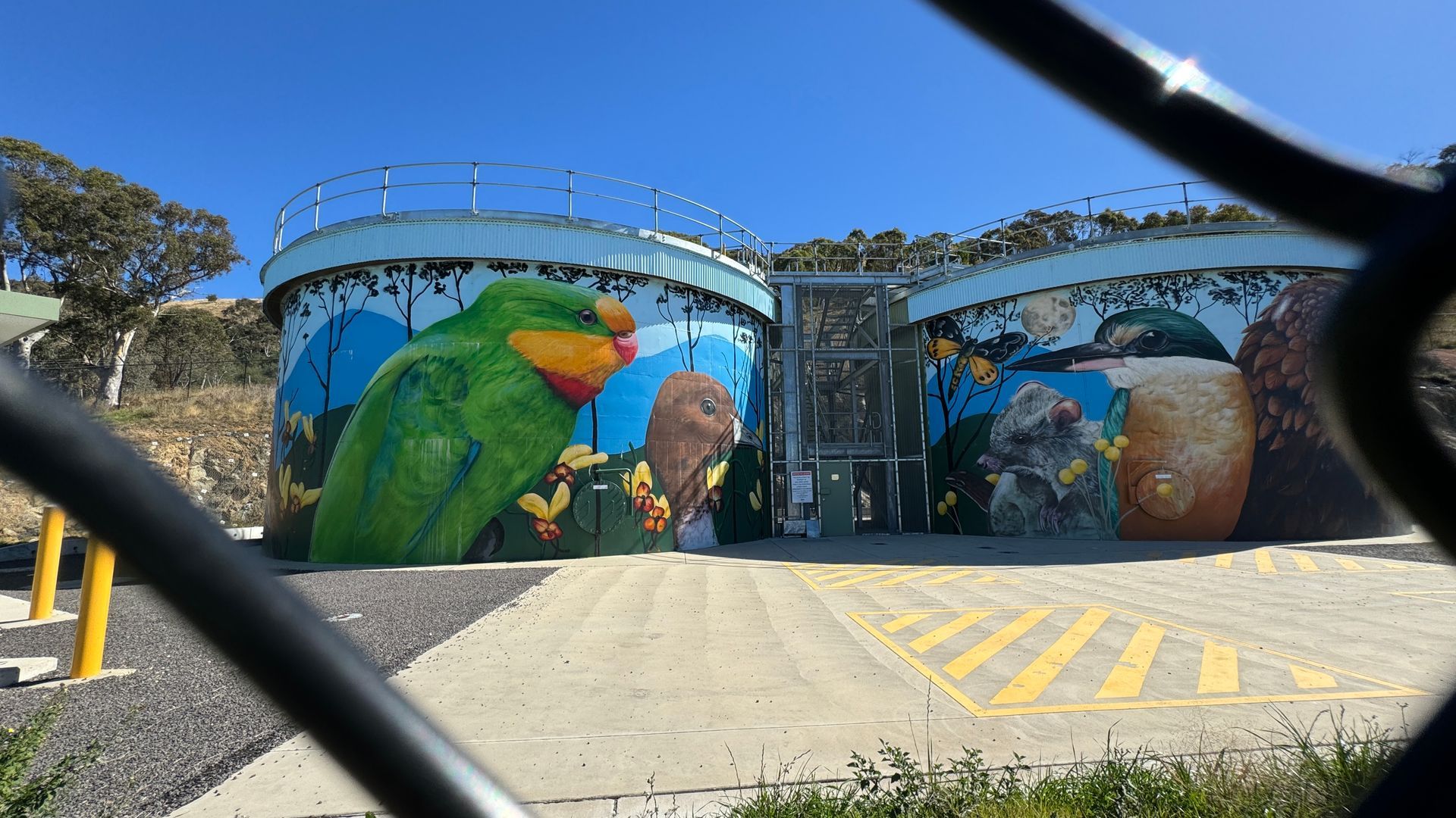 Griffith Water Tank Art by artist Heesco - Photo by ASAT